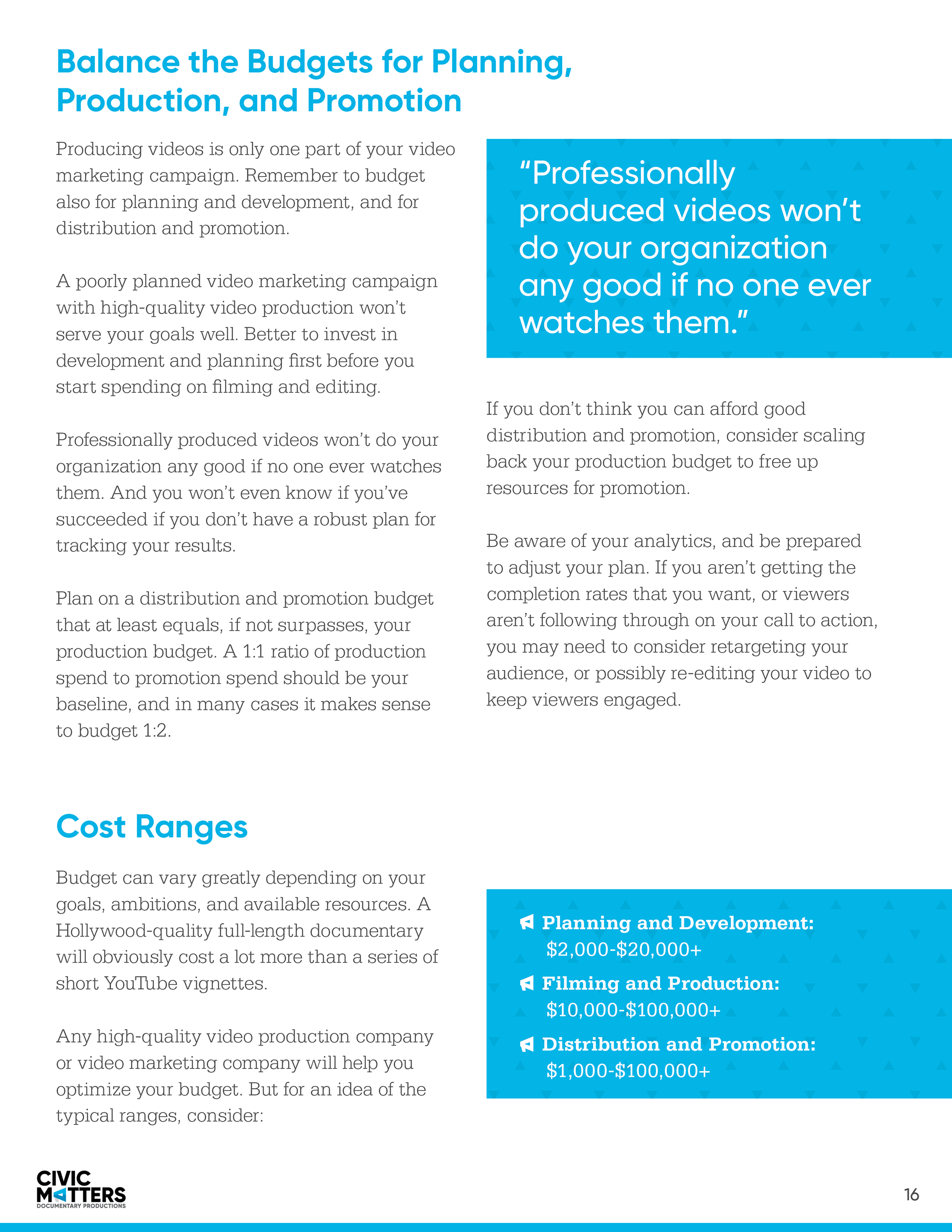 Design a White Paper for Civic Matters on the 12 Best Practices for Nonprofit Video Marketing. You can download the full White Paper here!